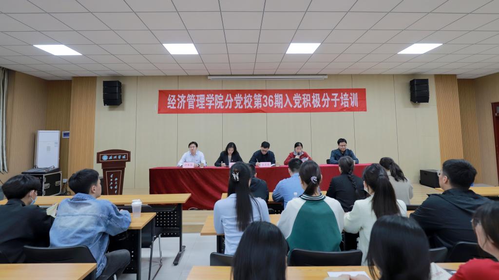 为深入贯彻习近平新时代中国特色社会主义思想,切实提高入党积极分子的理论水平和政治素养,保证新发展党员质量。4月16日晚19:00,经济管理学院在明理楼0157举行第36期入党积极分子培训开班仪式。学院党委班子成员、学生党支部书记及第36期入党积极分子培训班全体成员参与本次开班仪式。