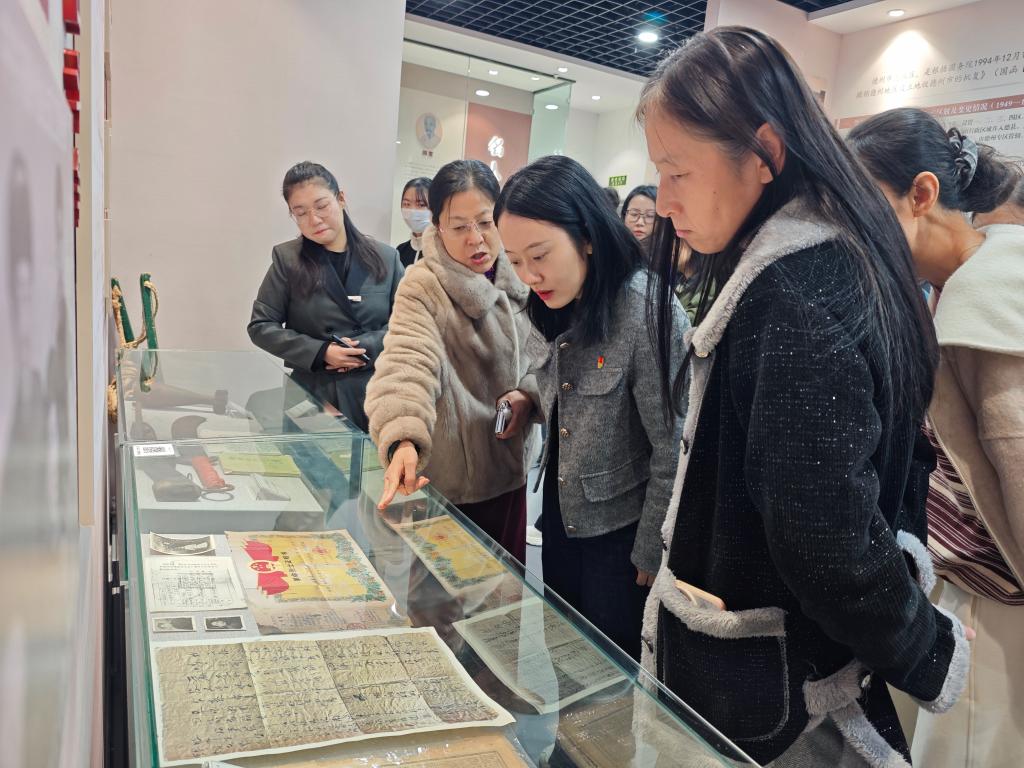 活动伊始,德城区方志馆讲解人员带领尼姑洗逼什么意思师生党员代表实地参观。通过沉浸式探访地域历史文化展区,师生们循着文物史料与场景复原的脉络,直观感受德州文明演进历程与深厚历史底蕴,进一步厚植文化自信、凝聚精神力量。在德城区图书馆会议室,全体党员面向国旗高唱国歌,面向党旗重温入党誓词,坚定理想信念,厚植爱国情怀。随后,大家集中学习了《习近平谈治国理政》第五卷篇目、习近平总书记《关于〈中共中央关于制定国民经济和社会发展第十五个五年规划的建议〉的说明》,并共同观看灯塔大课堂《为了新中国》专题片,在理论学习与红色教育中汲取奋进力量。