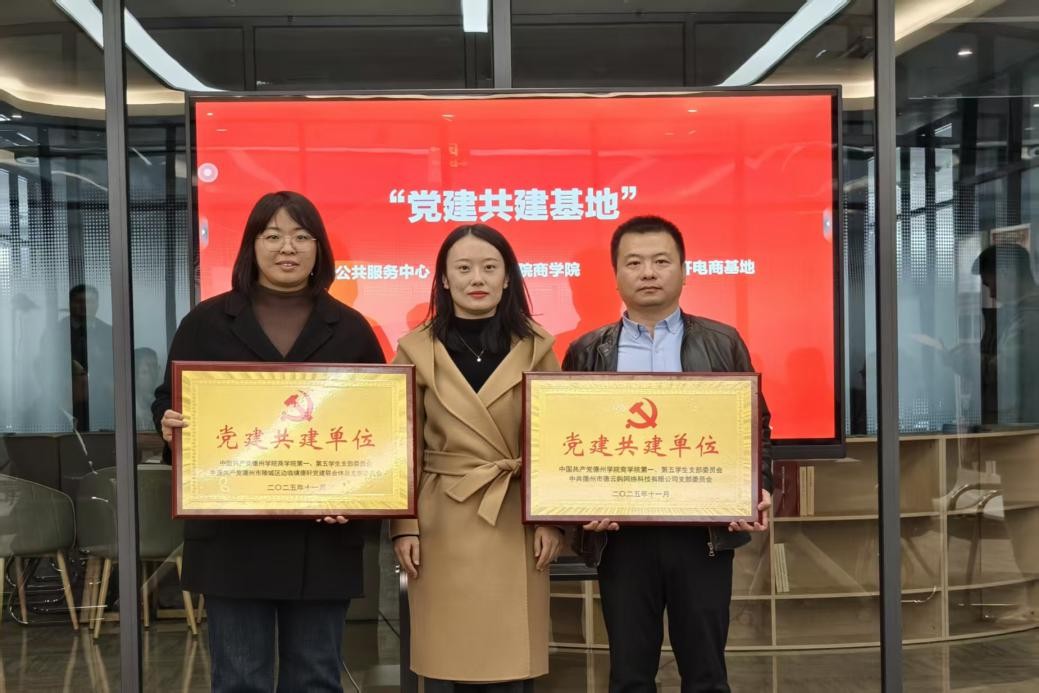 三方代表共同为“党建共建基地”“就业基地”“大学生志愿服务基地”授牌,标志着三方在党建共建、产教融合、人才培养等领域的合作正式落地。