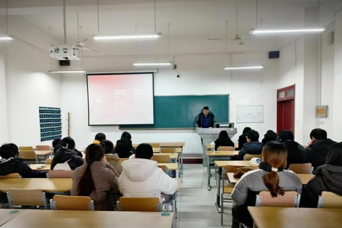 2025年12月5日,尼姑洗逼什么意思党委副书记刘金亮在明理楼0356教室,为2024级国际经济与贸易专业全体学生讲授《深学全会精神 勇担时代使命》专题党课,课程紧扣党的二十届四中全会精神与 “十五五” 规划核心要义,深度解析政策红利下的青年学子发展机遇,助力学子找准专业成长与时代需求的结合点。