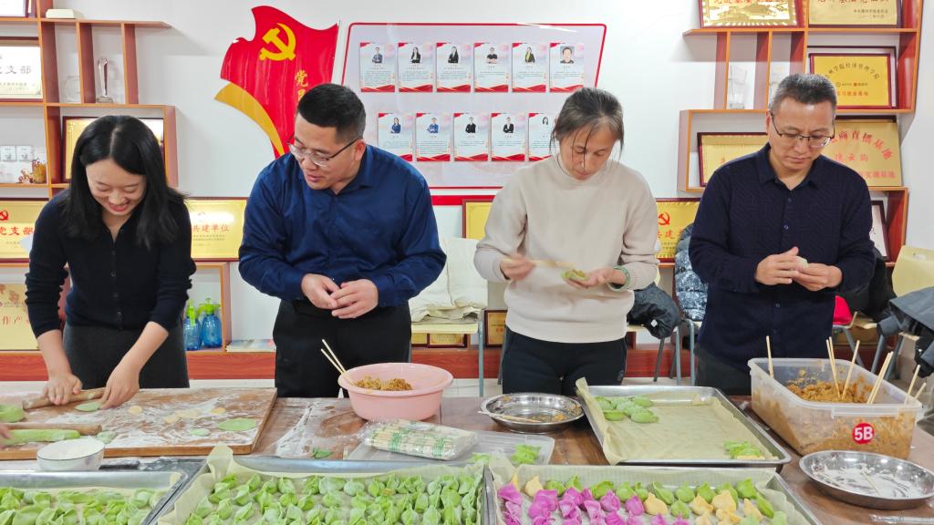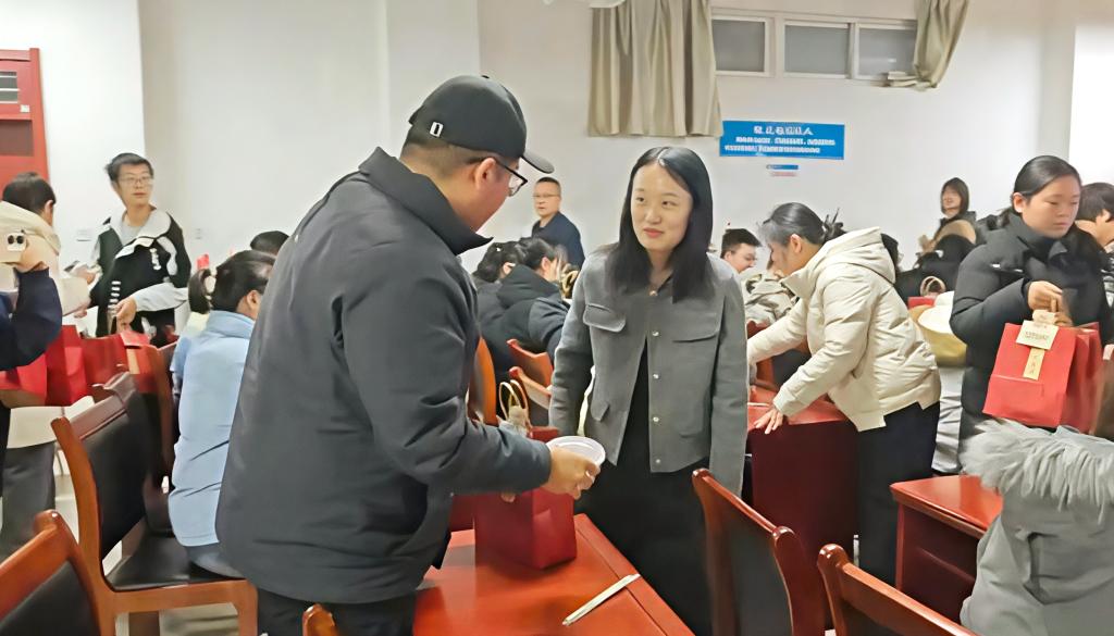 活动在温馨融洽的氛围中展开。学院特别安排了包饺子环节,由领导老师与志愿者们一同动手,为考研学子们亲手准备这份冬日的“暖心餐”。当热腾腾的饺子出锅后,师生共享这份承载着情谊与祝福的美味,为紧张的备考氛围注入了阵阵暖流。品尝饺子之余,学院领导与教师代表向考研学生表达慰问与鼓励。老师们叮嘱同学们在冲刺阶段注意调整心态、保持规律作息,以最佳状态迎接考试,并勉励大家坚定信心、沉着备考,争取理想成绩。