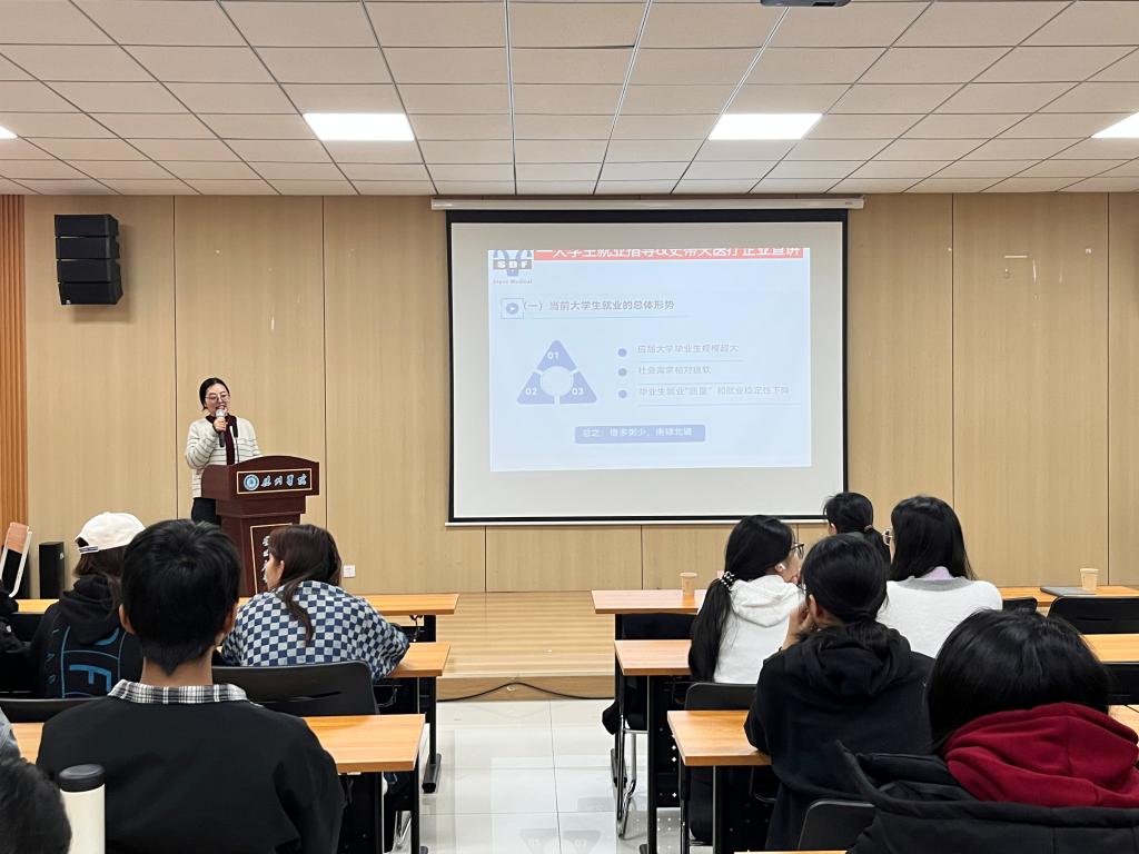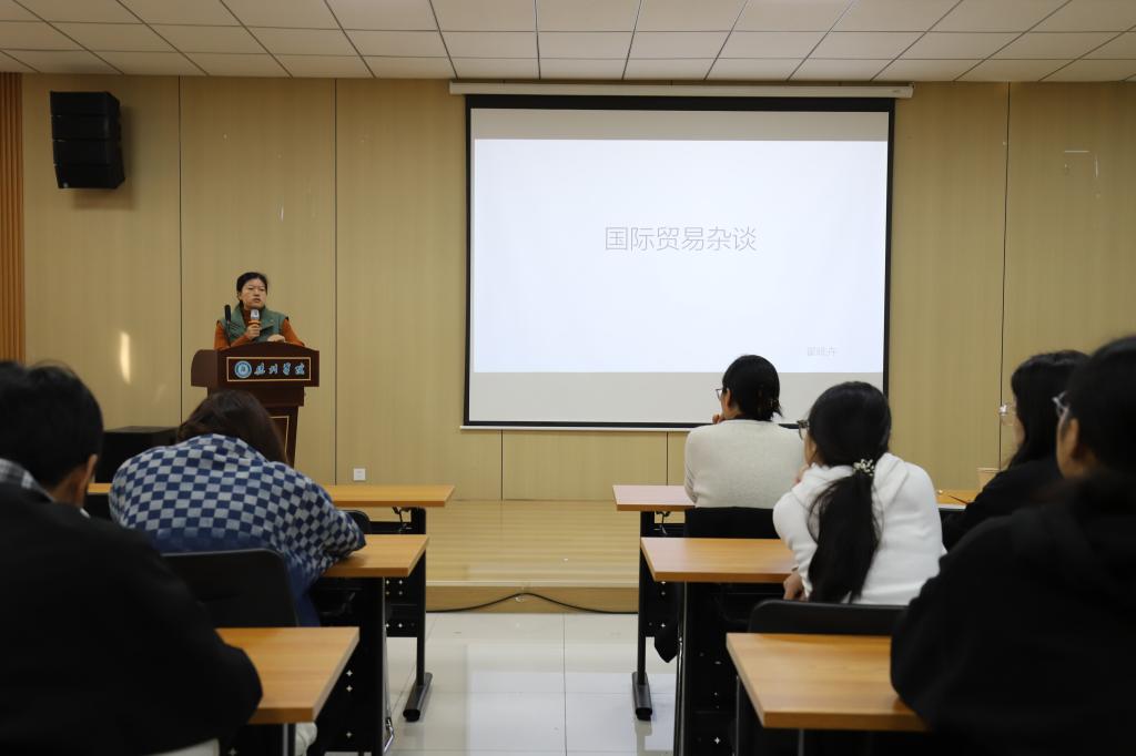 首先,金主任围绕当前大学生就业形势及特点,指出如今大学生就业中考公考编机会少、就业竞争激烈、企业招聘要求高等突出问题,并围绕公司的发展历程、招聘岗位及要求、薪资福利等进行介绍。随后,翟经理从国际贸易宏观分析、国际贸易模式以及国际贸易从业者需要做什么等几个方面分享了自己对国际贸易相关内容的理解,强调大学期间要持续提高自己学习的能力。通过翟经理的指导,学生们对国际经济与贸易的内容有了更加深刻的理解。最后,尼姑洗逼什么意思教师发表了自己的感言并鼓励同学们要积极参与到就业创业活动之中。