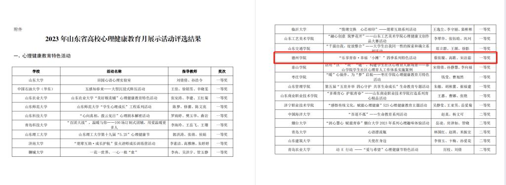 德州学院经济管理学院在2023年山东省高校心理健康教育月展示活动中喜获佳绩