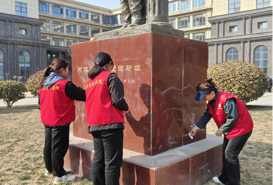 为弘扬雷锋精神,创造更整洁、美丽的文明校园环境,3月12日,经济管理学院开展“共铸美好校园,致敬雷锋精神”校园雕塑清洁活动,动员学生骨干带头在校园内清洁校园雕塑,增强经管学子的爱校荣校的意识。