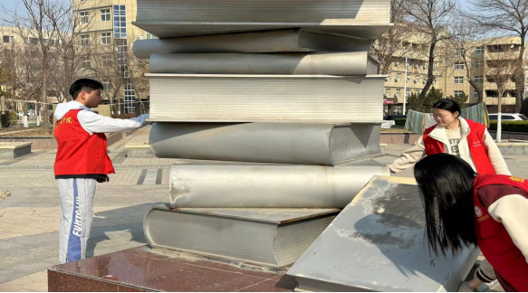 志愿者分为五个小组,在负责人的带领下,分别对儒风广场孔子像、求索园雕塑、体育楼“健康之源”雕塑、启智楼广场雕塑、腾飞广场雕塑及各雕塑周围进行了细致全面的清洁。志愿者们分工明确,团结协作,共同为清洁雕塑而努力,用实际行动维护校园环境的整洁美观。