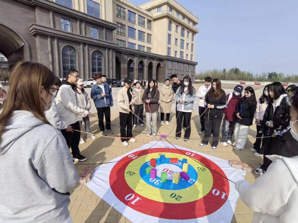 为践行“以德育心、以智慧心、以体强心、以美润心、以劳健心”教育理念,更好地丰富大学生的课余文体生活,提升同学们的心理素质,增强团队合作精神。4月9日下午,经济管理学院在东校区明理楼南侧广场开展“五育润心 沐光同行”春季户外心理素质拓展活动。