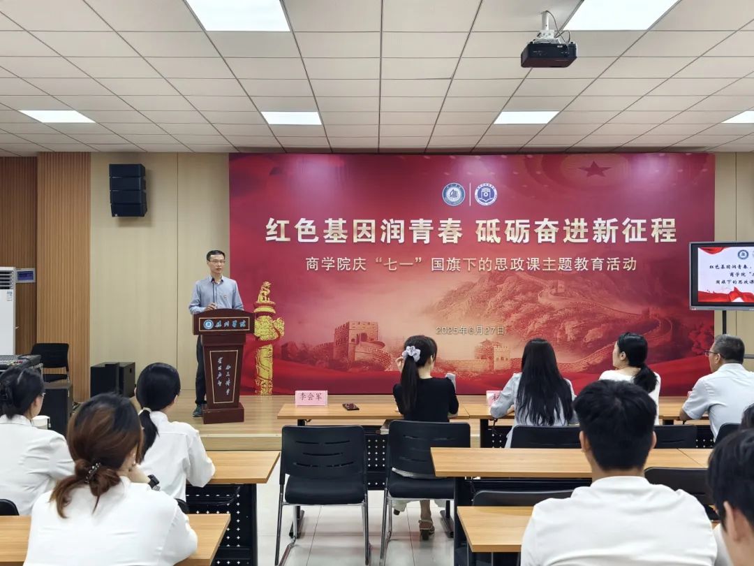 最后,党委书记孙晨晨作总结发言。她回顾了党的104年光辉历程,肯定了学院党建与事业发展深度融合取得的成效,并对师生提出三点期望:一要从党的历史中汲取智慧,筑牢信仰之基;二要立足本职岗位,将“初心”转化为“实干”;三要以青春之我投身民族复兴,在新时代展现新作为。
