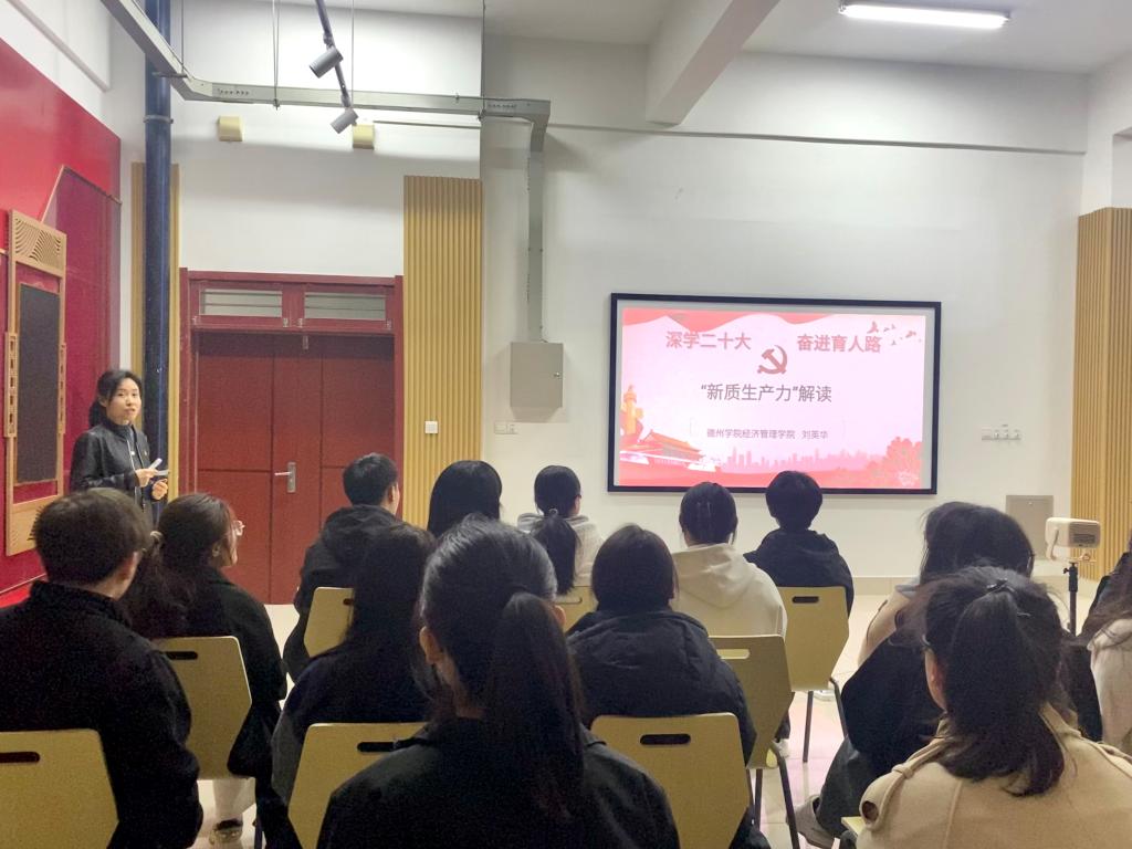 公益党课以“新质生产力解读”为主题,由第一教师党支部党员教师刘英华主讲,旨在深入解读新质生产力的内涵、特征及其在当今社会经济发展中的重要作用,为学生党员提供了一次宝贵的学习和交流机会。刘英华老师首先对新质生产力的概念进行了界定,指出新质生产力是以科技创新为主导,实现关键性颠覆性技术突破而产生的生产力,具有高科技、高效能、高质量的特征。随后,详细阐述了新质生产力的构成要素,这些要素相互融合、相互促进,共同构成了新质生产力的核心力量。最后,强调了其创新驱动的关键性。新质生产力的提升不仅体现在经济效益上,更体现在社会效益和生态效益的全面提升上。通过本次公益党课的学习,同学们对新质生产力有了更加深入的了解和认识,也更加坚定了努力学习、为国服务、投身经济发展的信心和决心。