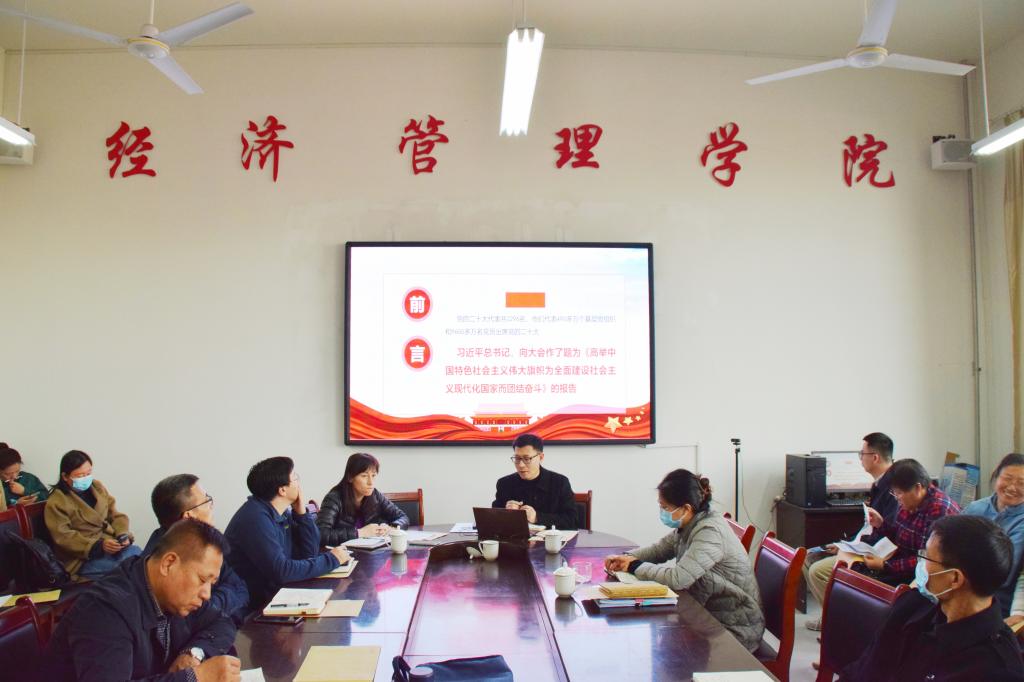 为深入学习贯彻中国共产党第二十次全国代表大会的精神,3月21日,学院党委书记以《学习贯彻党的二十大精神》为题讲授了专题党课,经管学院全体教职工及部分学生代表参加了此次专题党课。