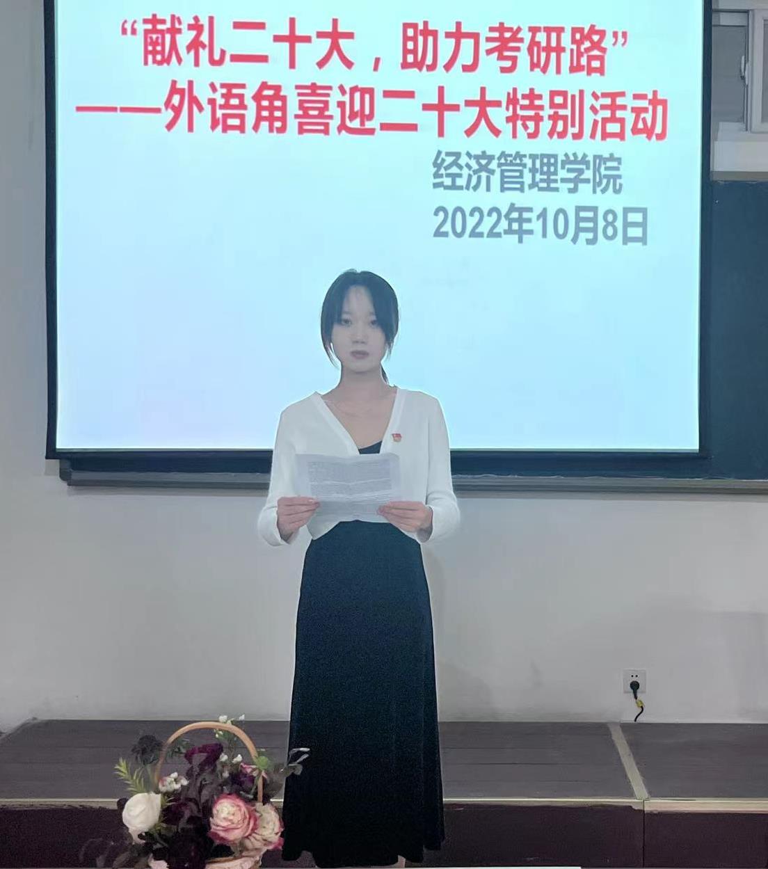 为进一步帮助同学们增强考研信心,提升考研竞争力,10月8日,经济管理学院第一教师党支部持续开展我为群众办实事“奋进路上你和我”系列活动——经济管理学院“We Meet”外语角“喜迎二十大 助力考研路”,为考研学子舒缓压力、加油助力。