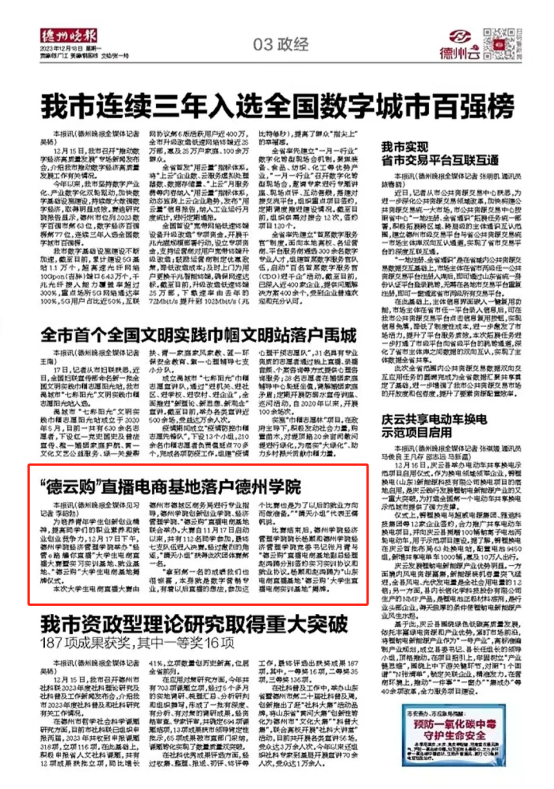德州晚报:“德云购”直播电商基地落户德州学院