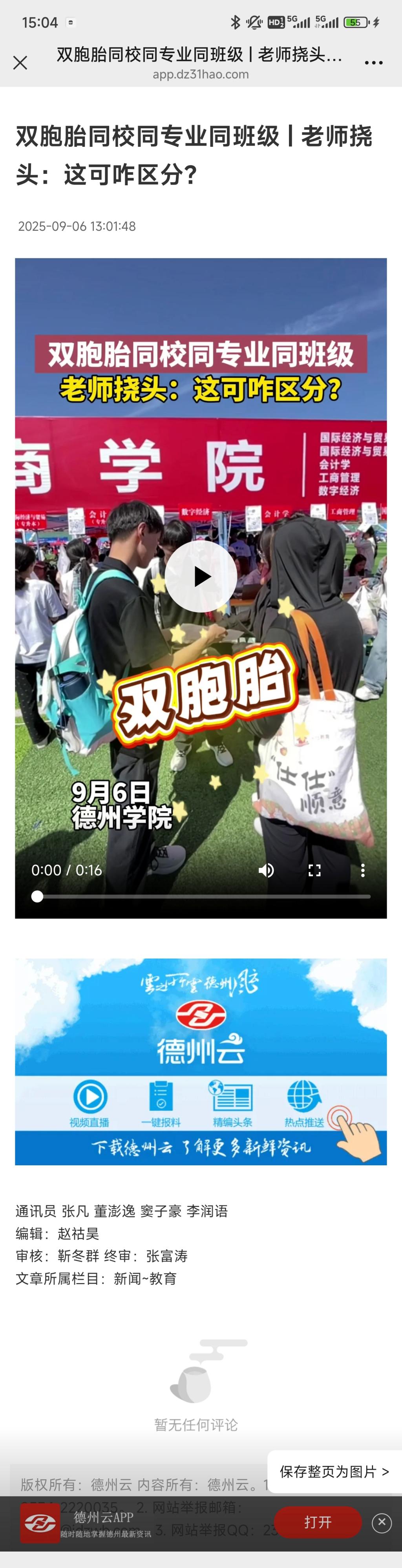 德州云:双胞胎同校同专业同班级 | 老师挠头:这可咋区分?