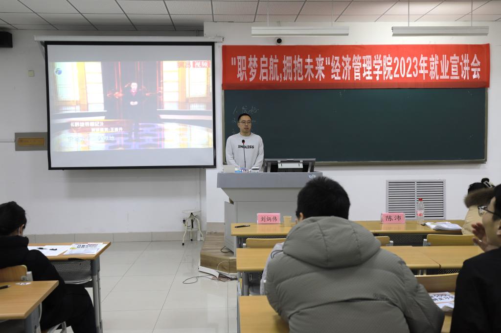 为拓宽毕业生就业渠道,抢抓促就业关键期,增强毕业生就业信心,切实做好2024届毕业生就业工作,12月26日下午,经济管理学院“职梦启航 拥抱未来”就业宣讲会在明理楼0233成功举办。