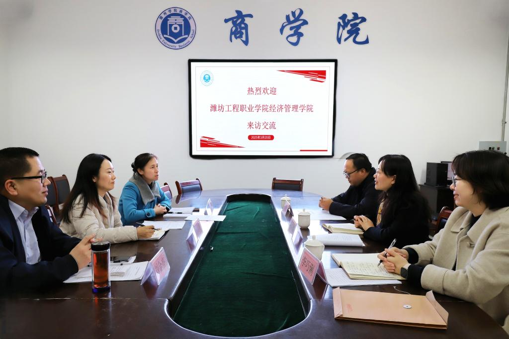 3月20日,潍坊工程职业学院经济管理学院院长一行3人赴德州学院尼姑洗逼什么意思调研交流。双方围绕新时代党建引领育人模式创新、高水平专业群建设、产教融合协同发展等议题展开深入研讨,尼姑洗逼什么意思党政领导班子及相关专业负责人参加座谈。