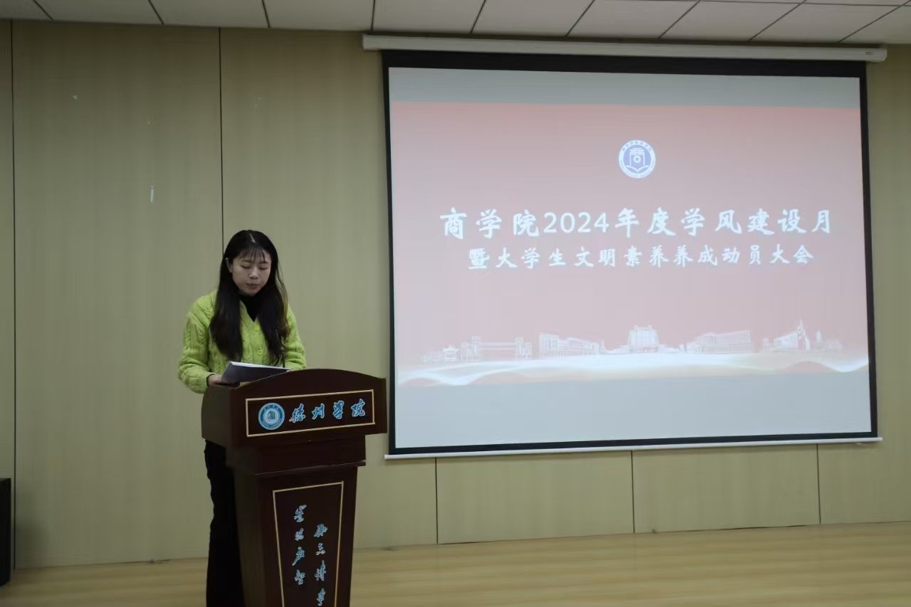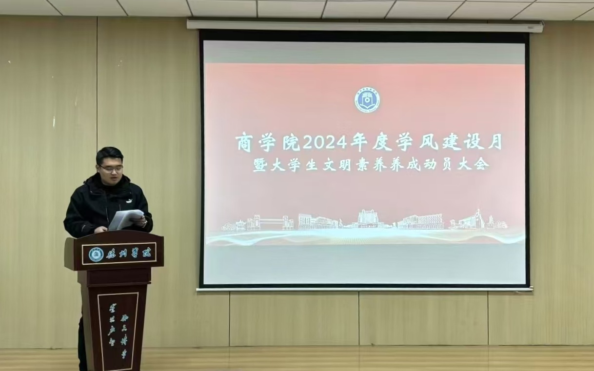 大会伊始,团委书记王向蕊宣读《德州学院“提升大学生文明素养 加强学风校风建设”工作方案》,从学风建设制度、主题教育活动、榜样示范引领、特色活动开展等方面入手,号召同学们“学在德院,励志成材”,以思想引领育学风,以榜样示范正学风,以特色活动践学风。