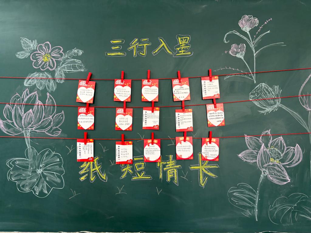 活动聚焦“家国情怀”“青春理想”“时代使命”三大主题,将宏大叙事浓缩于字句之间。参赛作品或赞颂山河锦绣,或书写奋斗志向,或感怀乡土情深,以简约诗行勾勒新时代青年与祖国同行的精神图谱。三行诗虽短,却承载着深厚的情感与思想,通过诗歌创作搭建起情感表达与价值引领的桥梁,让学生在艺术创作中感悟家国情怀、坚定文化自信。