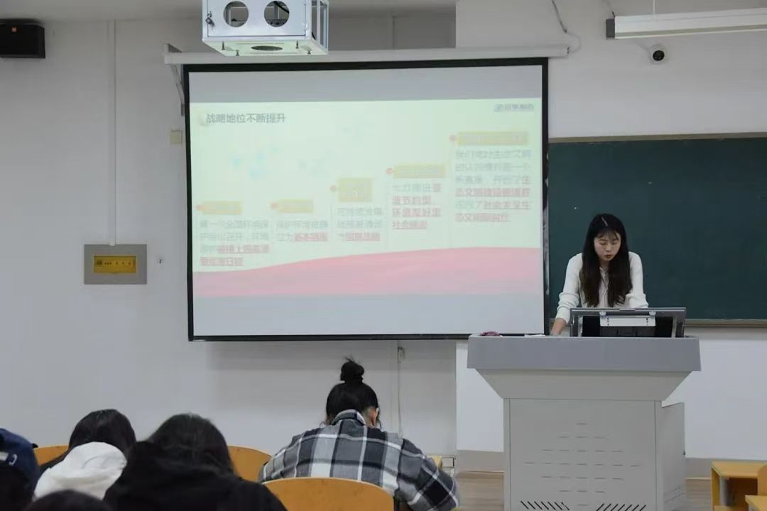 10月30日,辅导员孙乐老师以“2024年全国两会精神”和“习近平总书记‘五四寄语’关键词”为主题,介绍了新质生产力、科技创新等热点话题,并与大家一起聆听两会的声音。他强调广大团员青年要牢记历史使命,勇担时代重任,以更加饱满的热情和更加坚定的信念,投身到实现中华民族伟大复兴的宏伟事业。